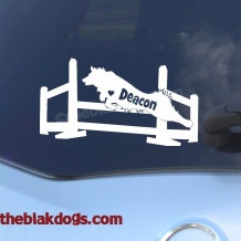 Aussie Agility Jump personalized custom name - Vinyl Sticker Car Decal - dog breed sticker, dog vinyl sticker, dog agility